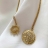 Настоящий хит. Позолоченный медальон Luna со вставками в виде маленьких цирконов на цепочке. Кулон имеет оригинальную фактуру. Размер регулируется.